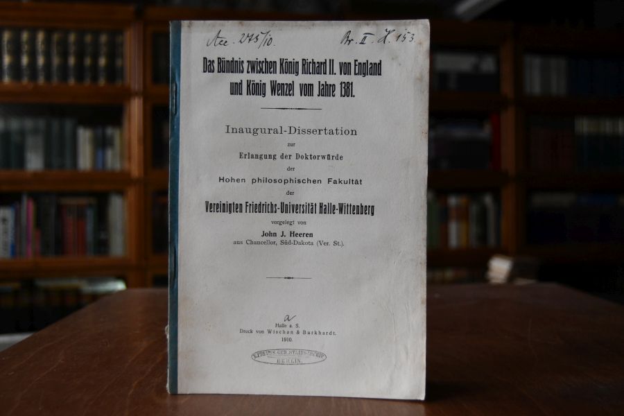 Beschreibung Einband berieben, bestoßen, angeschmutzt und fleckig. Bibliotheksexemplar (K.Preuss.Geh.Staats-Archiv Berlin) mit den üblichen Stempeln und Eintragungen. Innen sauber. John J. Heeren war u.a. Missionar der Presbytanischen Kirche in Tsingtau.