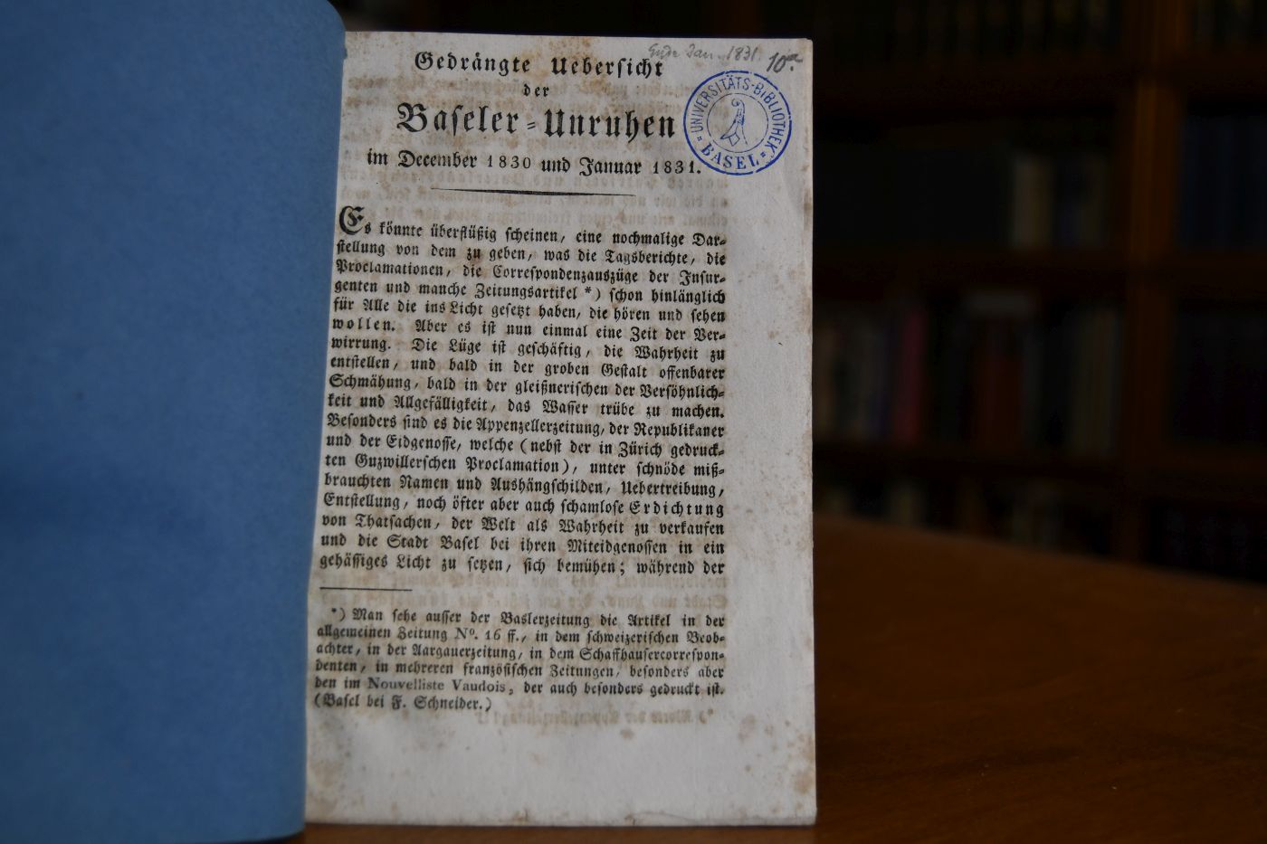 Gedrängte Uebersicht der Baseler-Unruhen im December 1830 und Januar 1831.