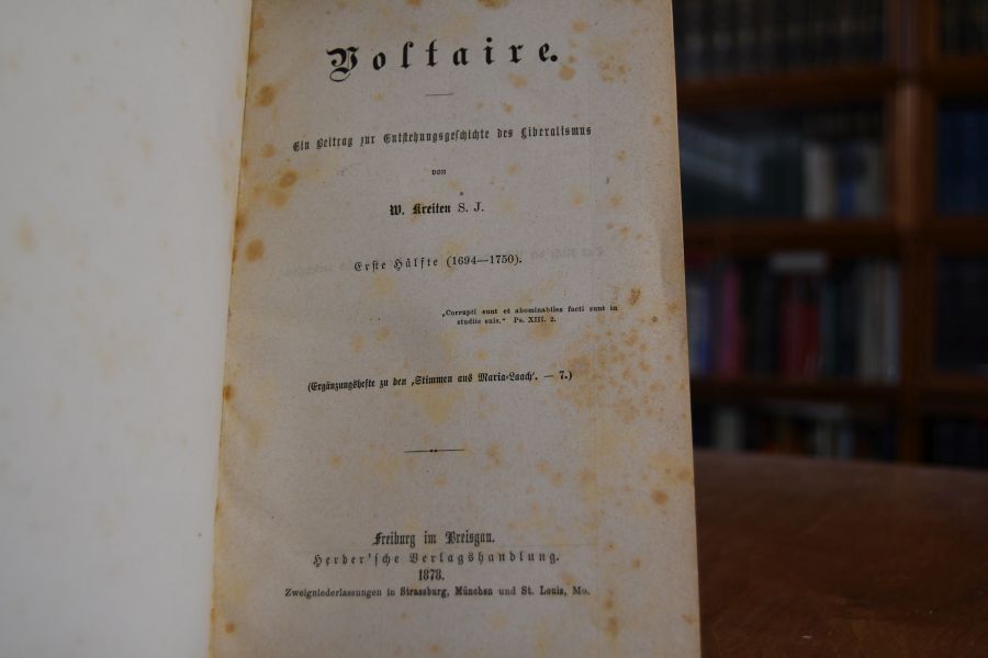 Voltaire. Ein Beitrag zur Entstehungsgeschichte des Liberalismus. 2 Hälften in einem Band.