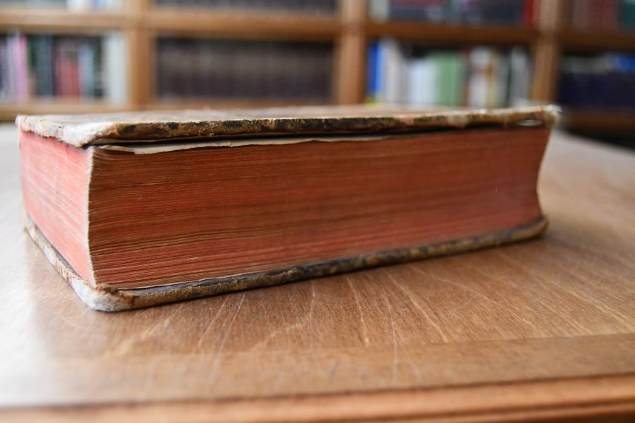 Format 21 x 14 cm, Leder mit 5 Bünden, Rückenschild und etwas -vergoldung