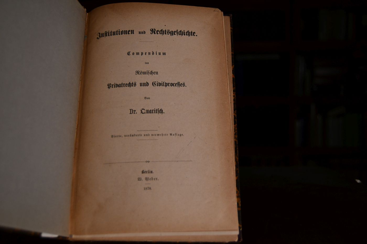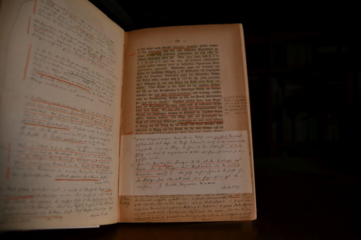 Beschreibung Einband berieben, bestoßen und mit fehlendem Rücken. Durchschossen gebunden. Durchgehend mit Unterstreichungen und handschriftlichen Marginalien wohl vom Vater des Ethnologen Paul Leser stammend, der Oberlandesgerichtsrat in Frankfurt war. Besitzerstempel (Paul Leser) auf dem Innendeckel. Beigegeben das Fragment eines unbekannten zweiten Bandes mit umfangreichen Marginalien derselben Hand.