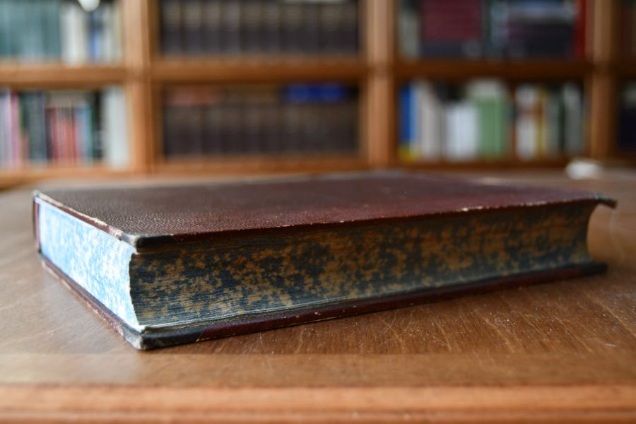 Format 20 x 17 cm, schlichter Halbleinenband des 19. Jhdts. mit handgeschriebenem Rückenschild