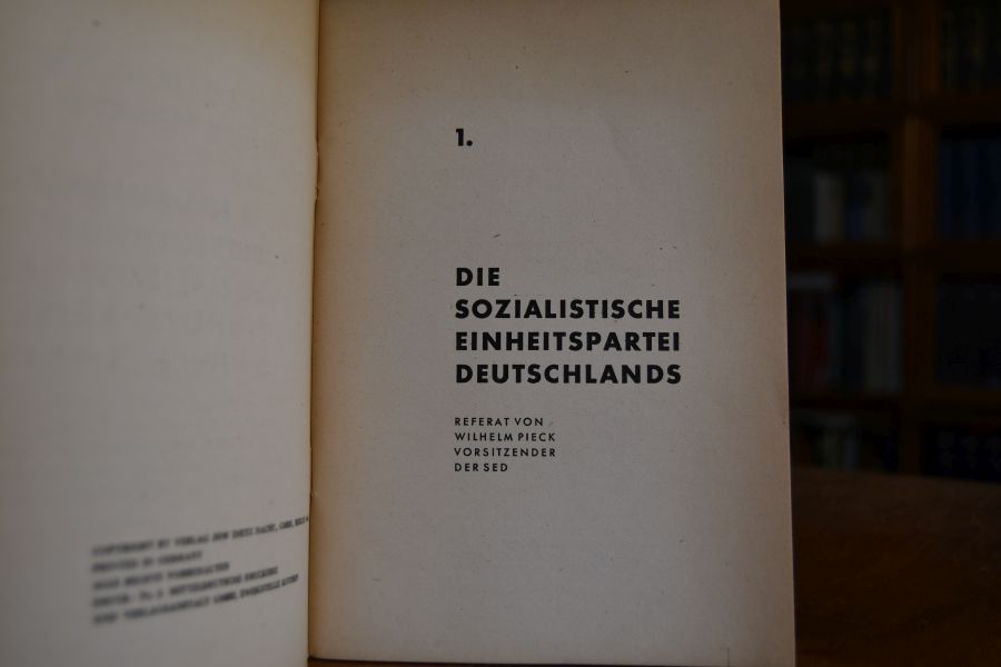 Die SED und der Aufbau Deutschlands. Grundlegende Referate von Wilhelm Pieck und Otto Grotewohl auf dem Vereinigungsparteitag der SED vom 20. bis 22. April 1946 in Berlin.