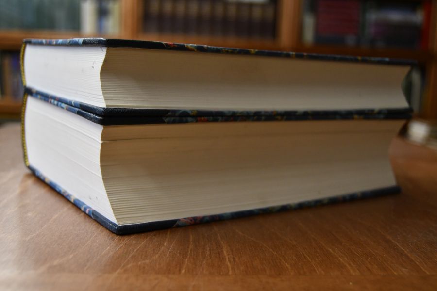 Format 25 x 21 cm, privates Halbleder mit eingebundenem Broschurvorderdeckel