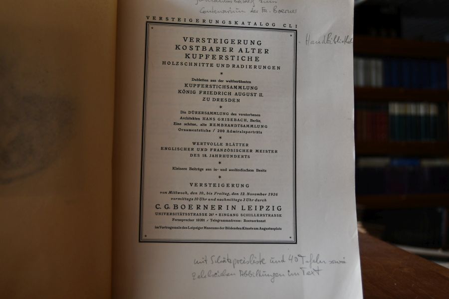 C.G. Boerner Leipzig. Versteigerungskatalog CLI. Versteigerung kostbarer alter Kupferstiche, Holzschnitte und Radierungen Dubletten aus der weltberühmten Kupferstichsammlung König Friedrich August II. zu Dresden. Die Dürersammlung des verstorbenen Architekten Hans Grisebach, Berlin. Eine schöne, alte Rembrandtsammlung. Ornamentstiche / 200 Admiralsporträts. Wertvolle Blätter englischer und französischer Meister des 18. Jahrhunderts. November 1926.