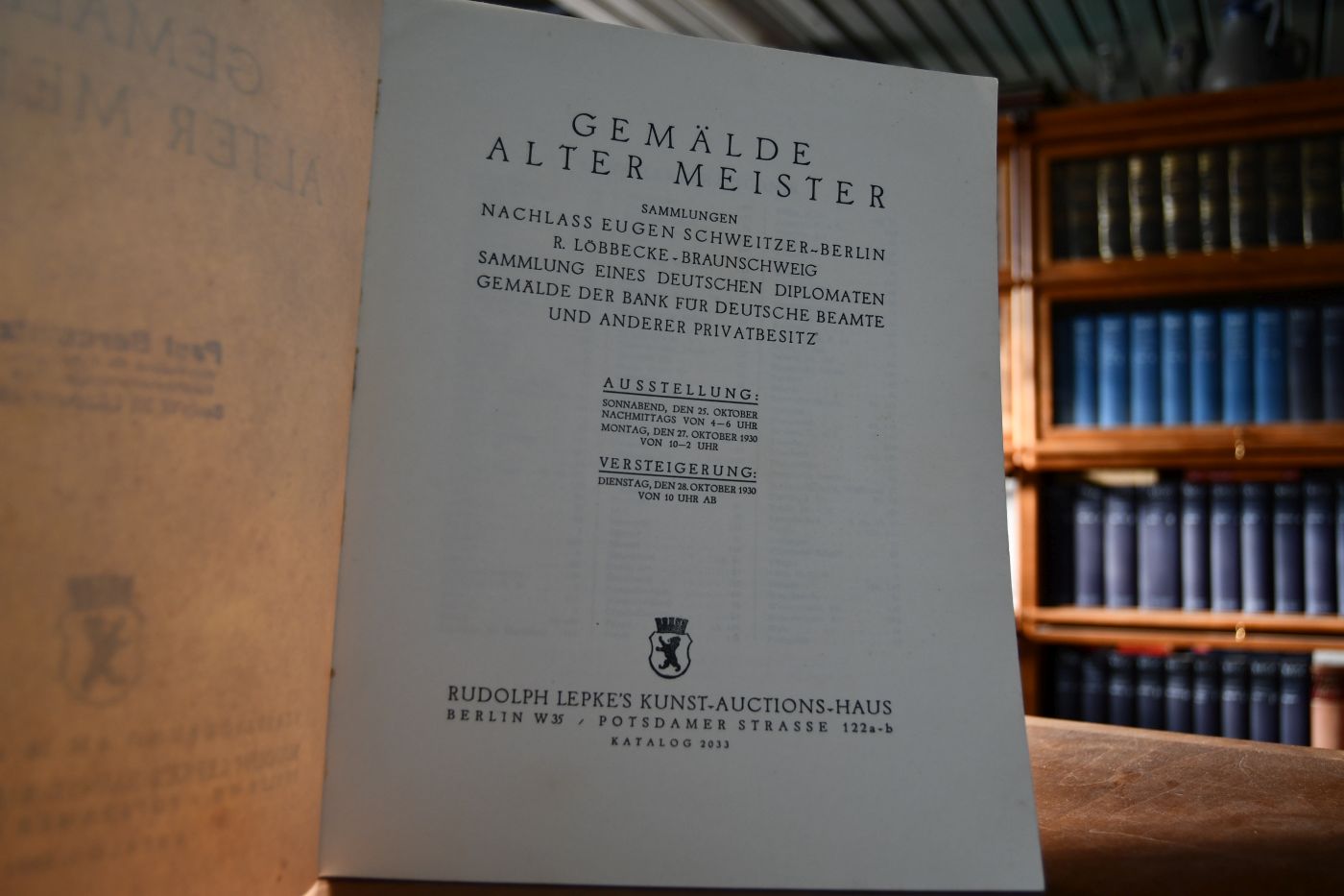 Gemälde alter Meister. Sammlungen Nachlass Eugen Schweitzer-Berlin, R. Löbbecke-Braunschweig, Sammlung eines deutschen Diplomaten, Gemälde der Bank für Deutsche Beamte und anderer Privatbesitz. 28. Oktober 1930.