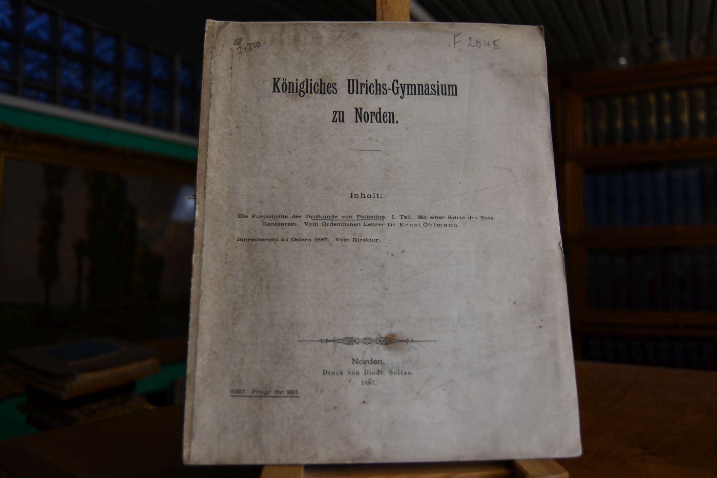 Inhalt: Die Fortschritte der Ortskunde von Palästina, 1. Teil, mit einer Karte des Sees Genezareth, von Ernst Öhlmann; Jahresbericht zu Ostern 1887, vom Direktor.