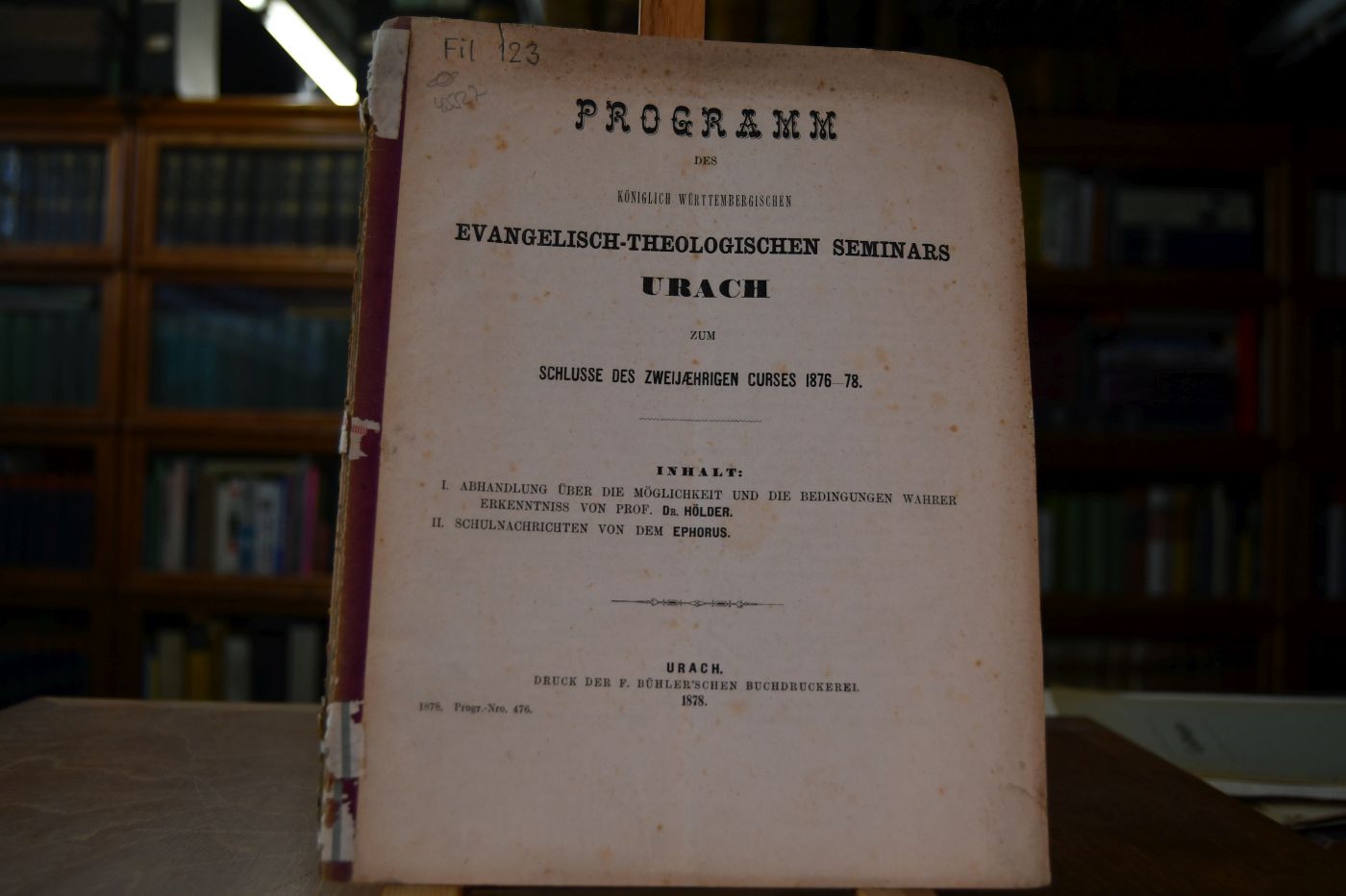 Programm des Königlich Württembergischen Evangelisch-Theologischen Seminars Urach zum Schlusse des zweijährigen Kurses 1876-78.