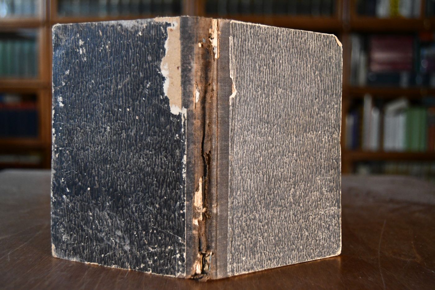 Beschreibung Einband berieben, bestoßen, mit Einrissen und Verlust am Rücken. Bindung gelockert, Lagen vorgefallen. Randeinrisse, fleckig und immer wieder geöffneter Falz. Mit handschriftlicher Widmung einer Sonntagsschule in Jesingen auf dem fliegenden Vorsatz.