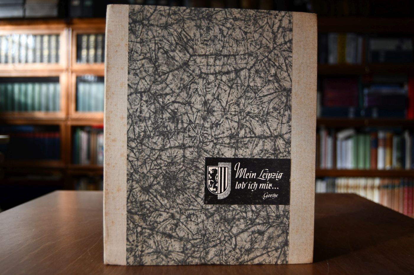 Beschreibung Mappe berieben, bestoßen und fleckig. 12 auf Karton aufmontierte Fotografien aus Leipzig in Leinenmappe. Jedes Bild rückseitig mit Verlagsstempel.