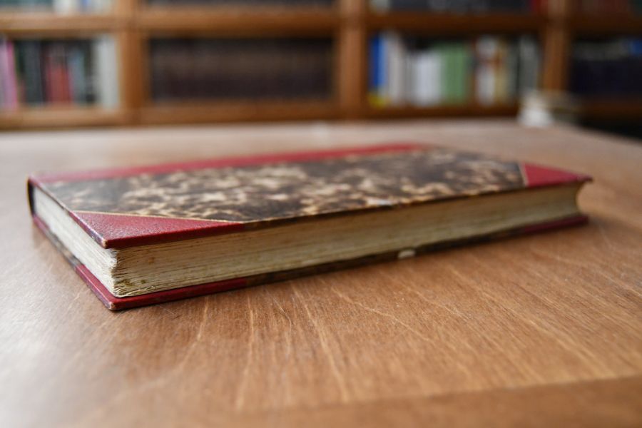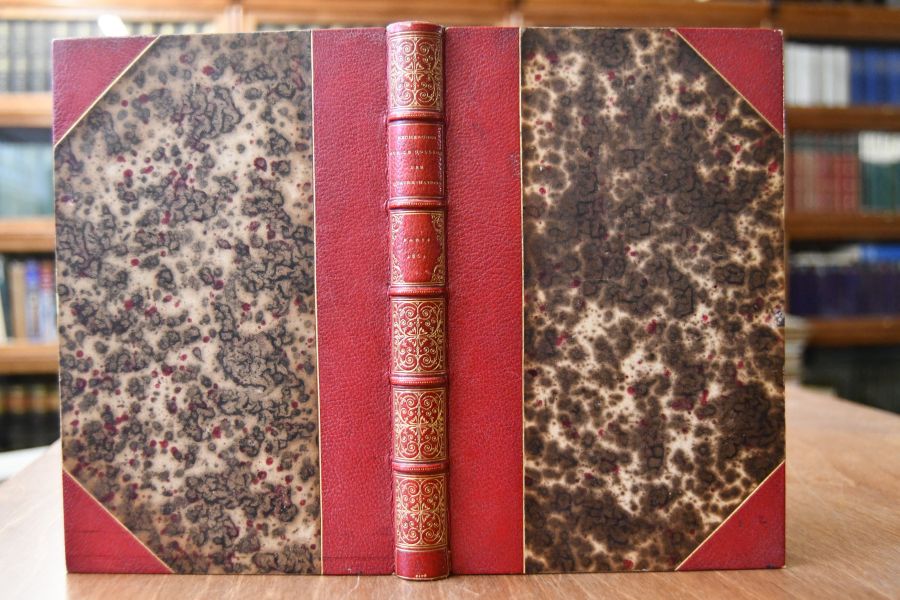 Format 21 x 14 cm, Halbleder mit 5 Bünden und Rückenvergoldung sowie Kopfgoldschnitt