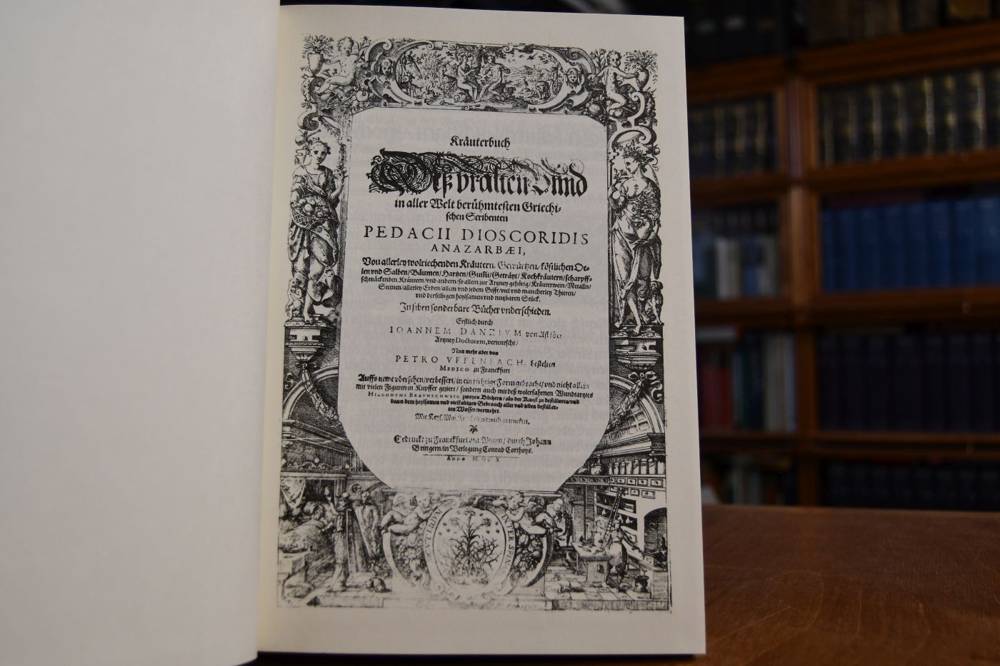 Kräuterbuch des uralten und in aller Welt berühmtesten griechischen Scribenten Pedacii Dioscoridis Anazarbaei, von allerley wolriechenden Kräutern, Gewürtzen, köstlichen Oelen und Salben, Bäumen, Hartzen, Gummi, Geträyt, Kochkräutern, scharffschmäckenden Kräutern und andern so allein zur Arzney gehörig Kräuterwein, Metalln, Steinen allerley Erden, allem und jedem Gifft, viel und mancherley Thieren und derselbigen heylsamen und nuzbaren Stück.