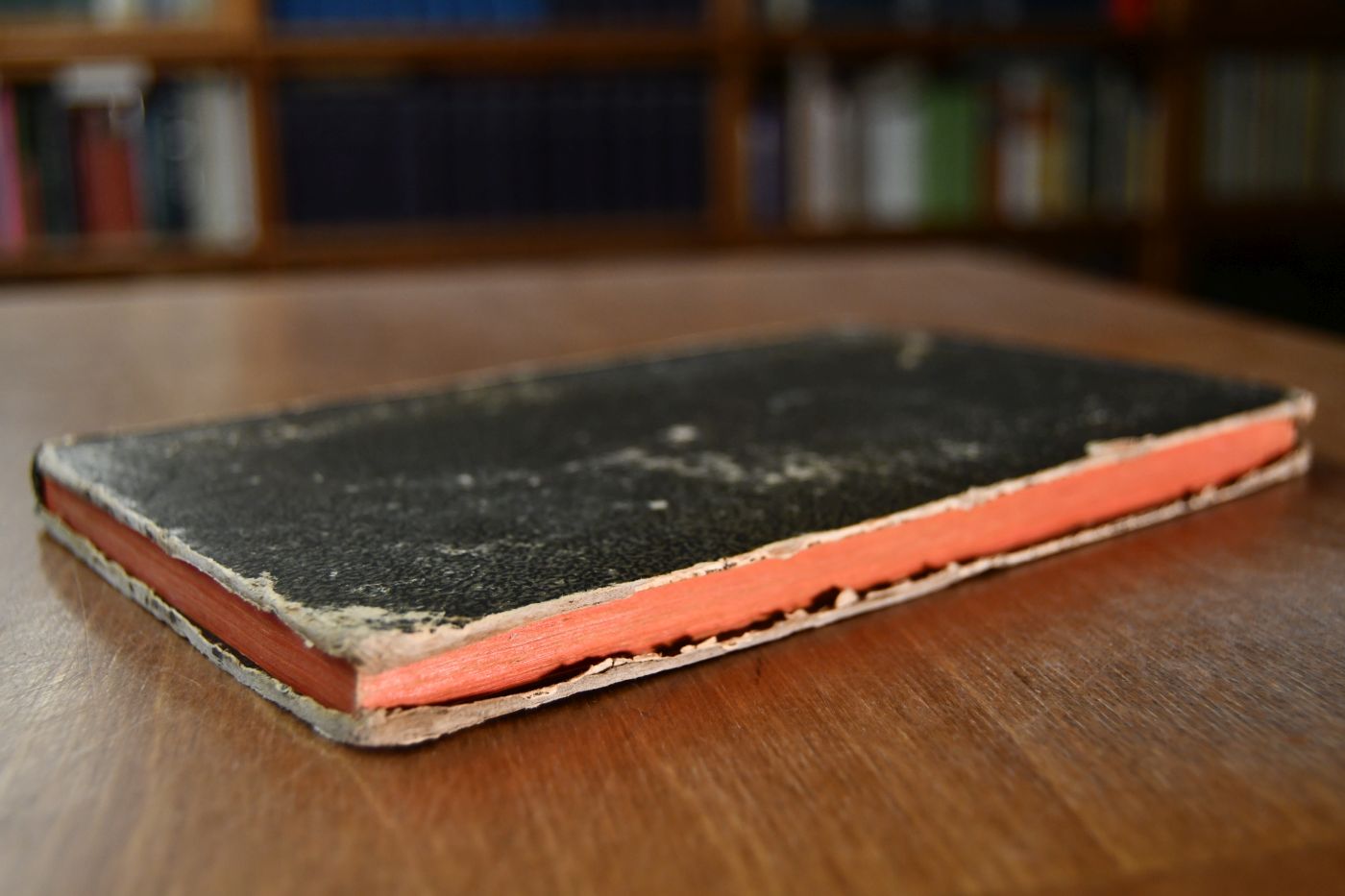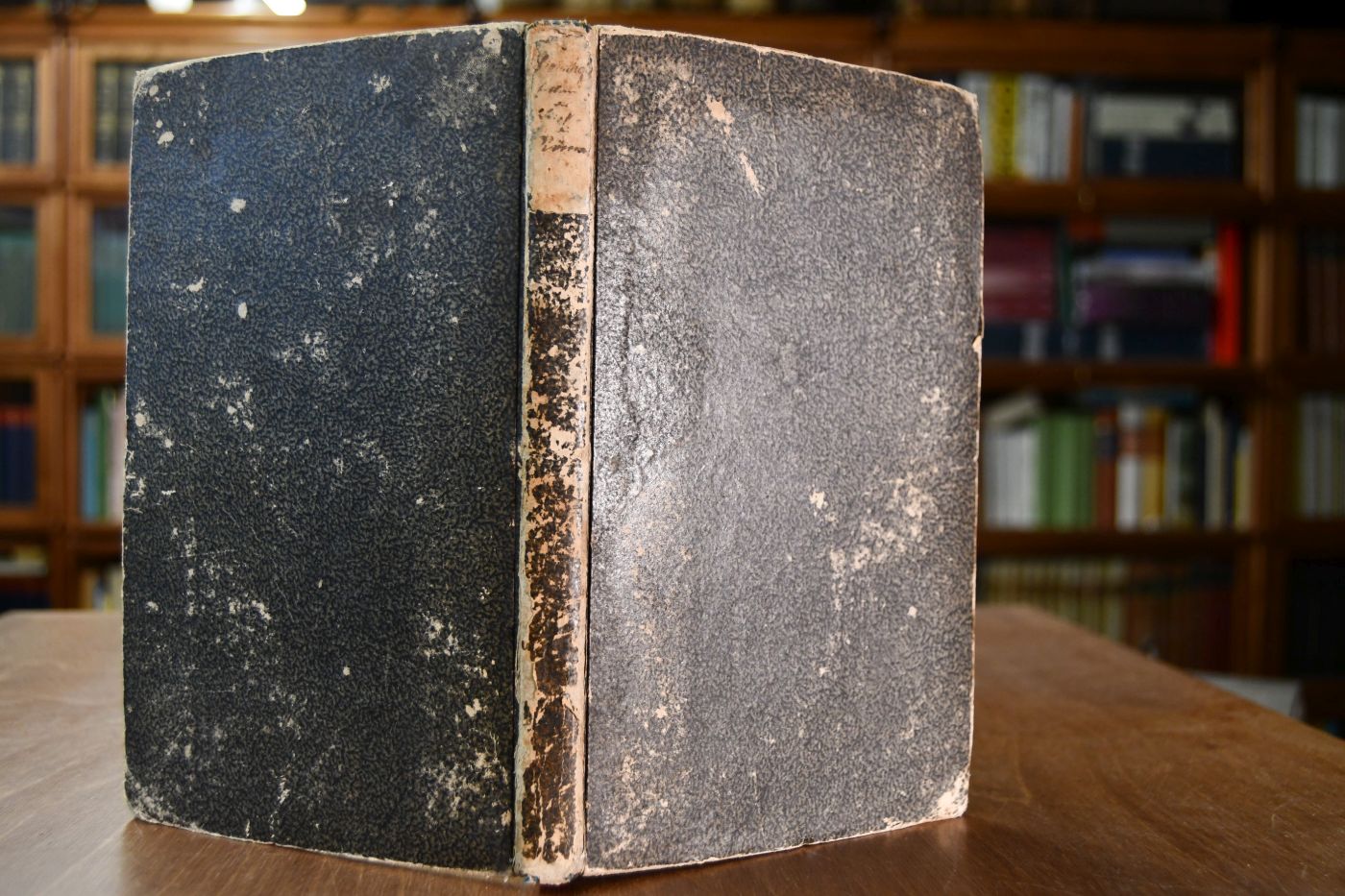 Format 22 x 14 cm, Pappband der Zeit mit handschriftlichem Rückentitel und umlaufenden Rotschnitt