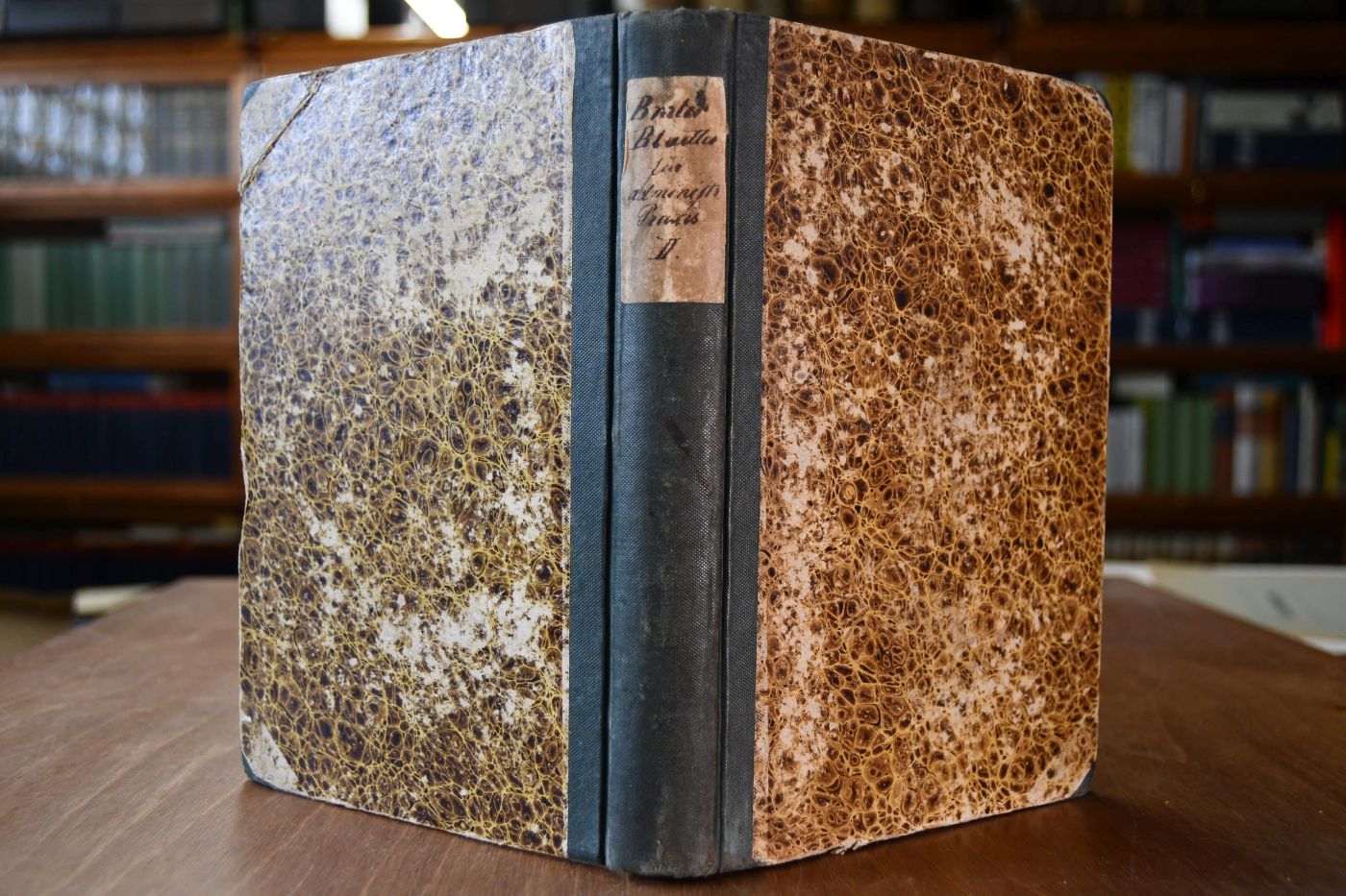 Format 21 x 14 cm, Halbleinen der Zeit mit handschriftlichem Rückentitel.
