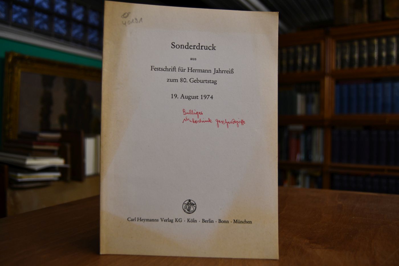 Sonderdruck aus: "Festschrift für Hermann Jahrreiß zum 80. Geburtstag, 19. August 1974".