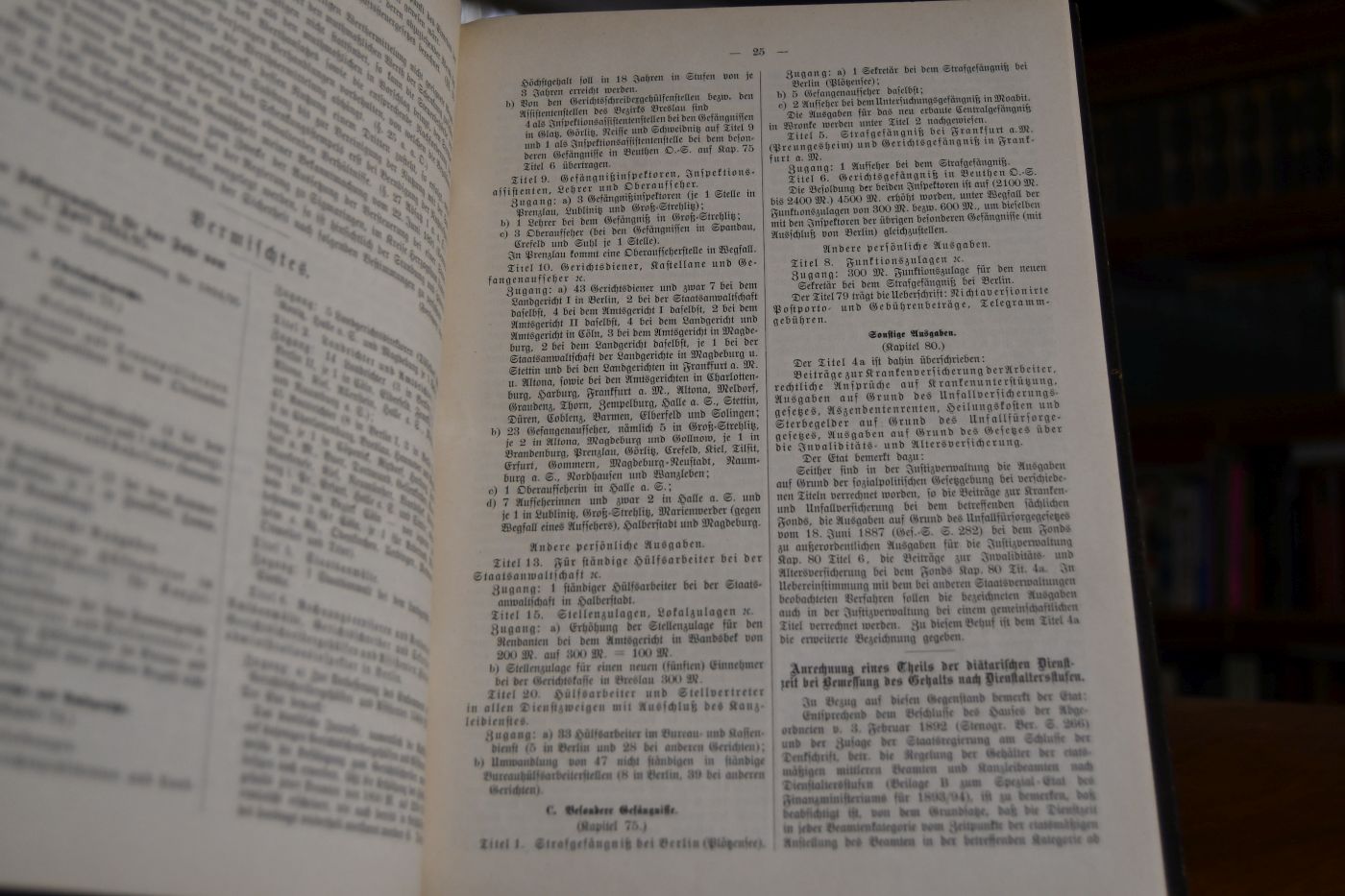 Beschreibung Einband berieben und bestoßen. Bibliotheksband (Koen. Preuss. Amtsgericht Haigerloch) mit den üblichen Stempeln und Eintragungen. Durchgehend mit Mittelfalz.Schnitt und Vorsätze fleckig.