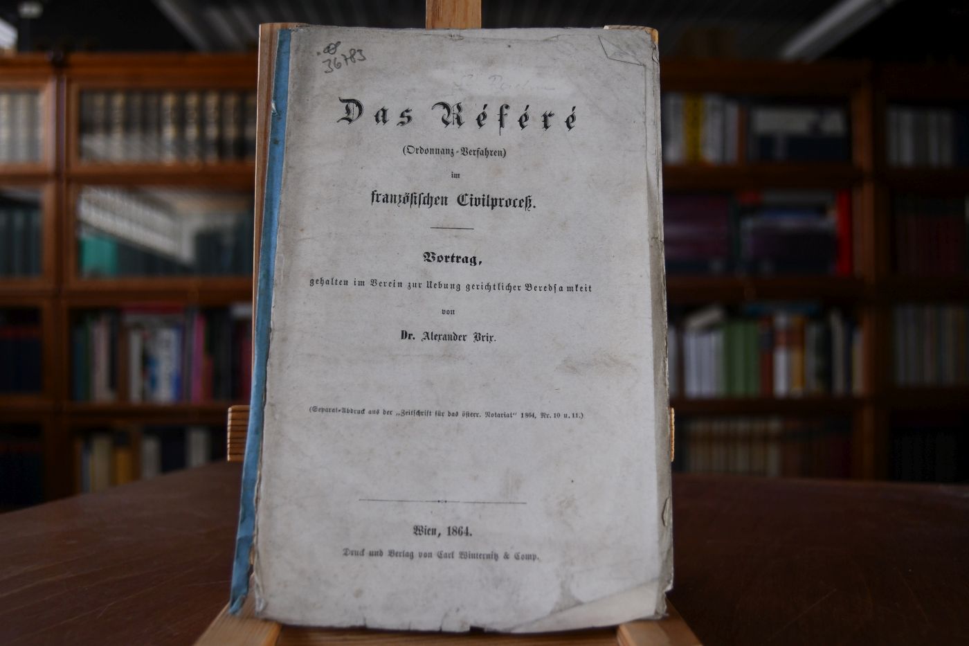 Das Refere (Ordonnanz-Verfahren) im französischen Civilproceß. Vortrag gehalten im Verein zur Uebung gerichtlicher Beredsamkeit.