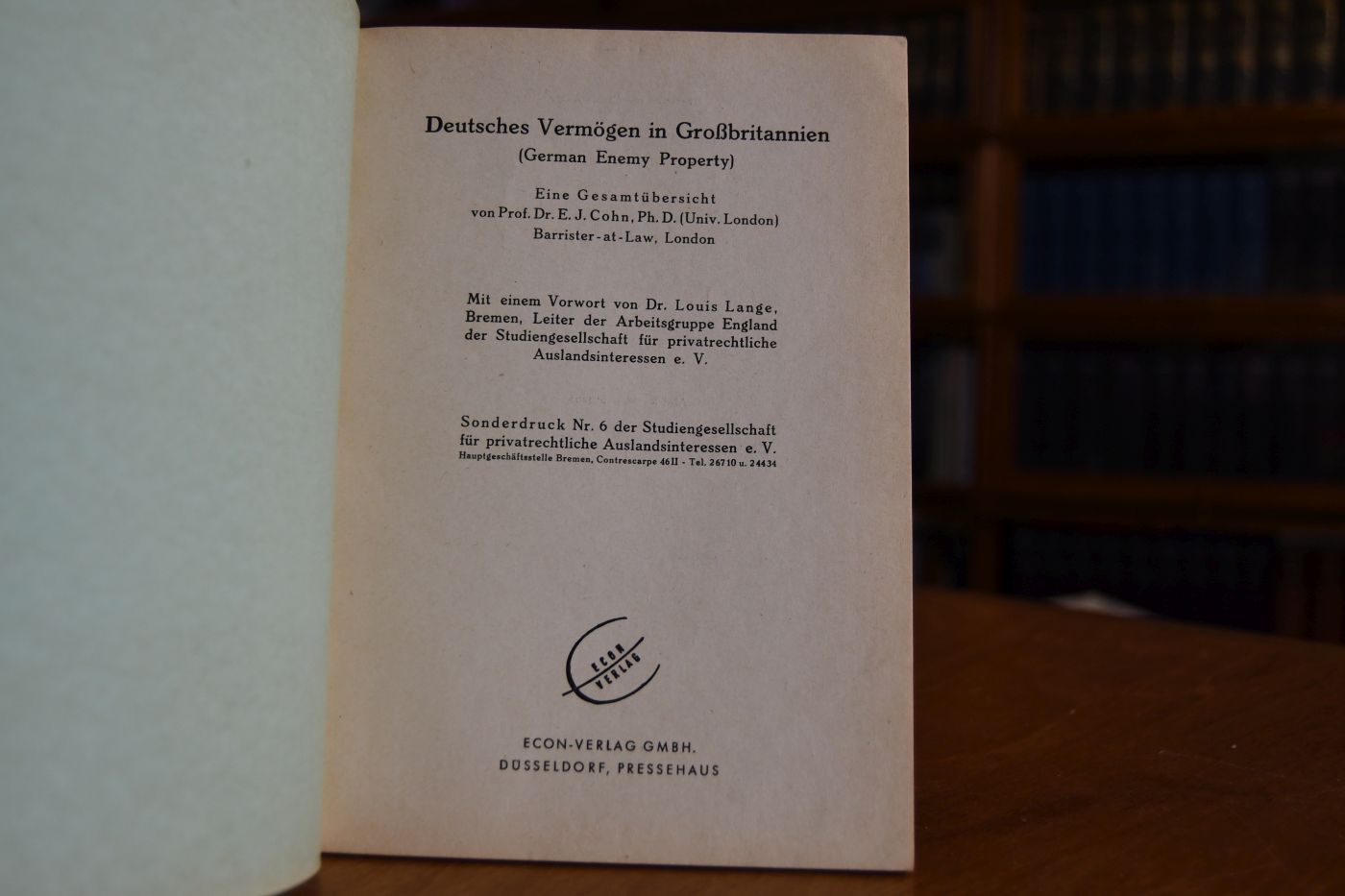 Eine Gesamtübersicht von E.J. Cohn. Mit einem Vorwort von Louis Lange. Sonderdruck Nr. 6 der Studiengesellschaft für privatrechtliche Auslandsinteressen.