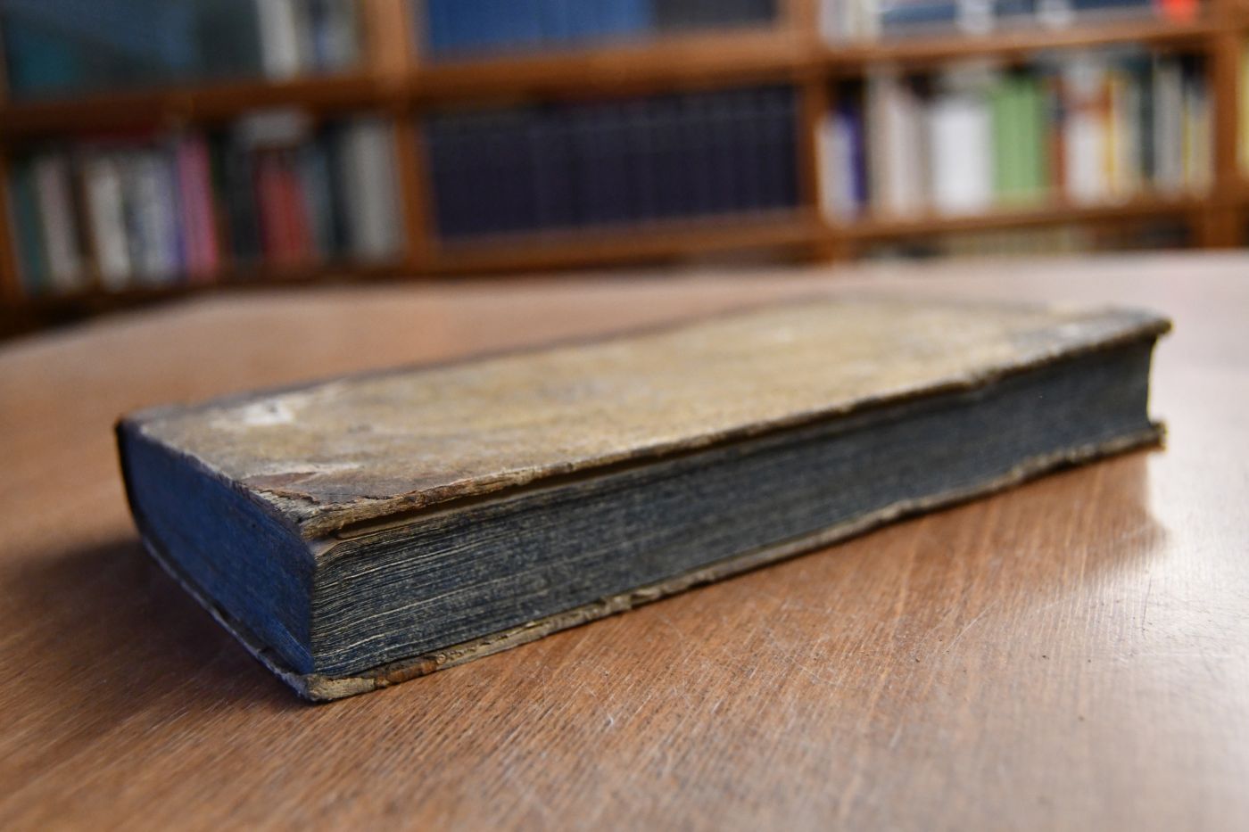 Format 21 x 12 cm, Halbleder mit 5 Bünden und umlaufenden Sprengschnitt