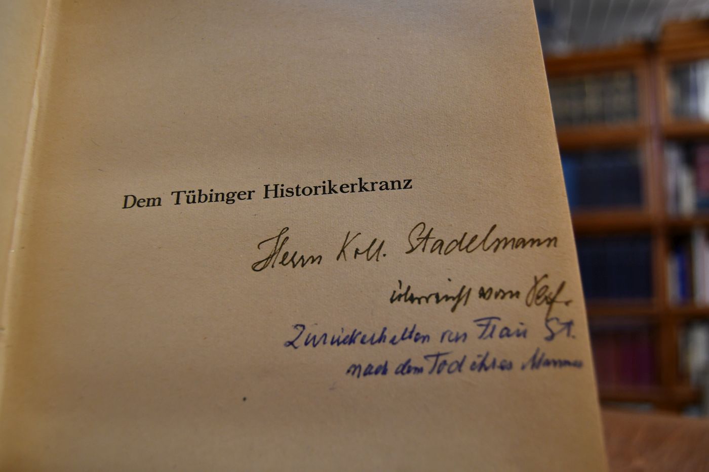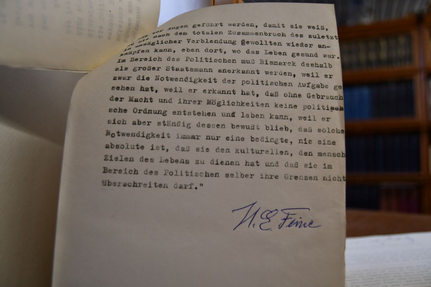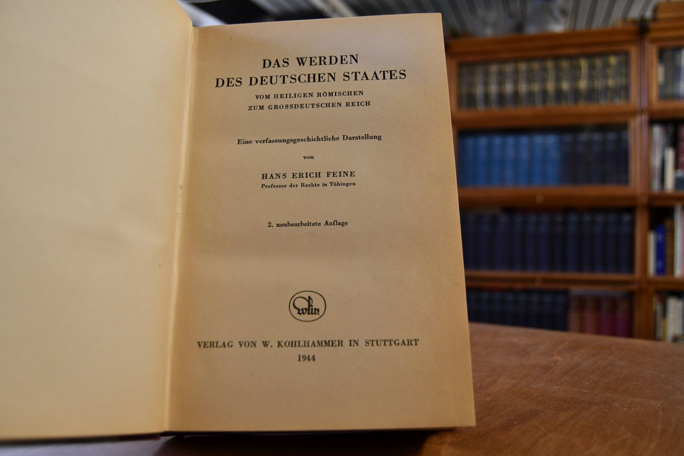 Beschreibung Einband berieben. Oberer Schnitt angeschmutzt und fleckig. Mit handschriftlicher Widmung von Hans Erich Feine an Rudolf Stadelmann auf dem Widmungsblatt. Darunter handschriftlicher Vermerk über den Rückerhalt des Buches nach dem Tod von Rudolf Stadelmann. Beiliegend ein von Hans Erich Feine unterschriebener Durchschlag eines Nachworts für eine evtl. Neuausgabe des Werkes. Ebenfalls beiliegend ein Brief vom 30. Juni 1967 von Rüdiger Feine, dem Sohn von Hans Erich Feine, der mitteilt, dass die Familie die Zeit für eine Neuauflage des Werkes noch nicht für reif hält.