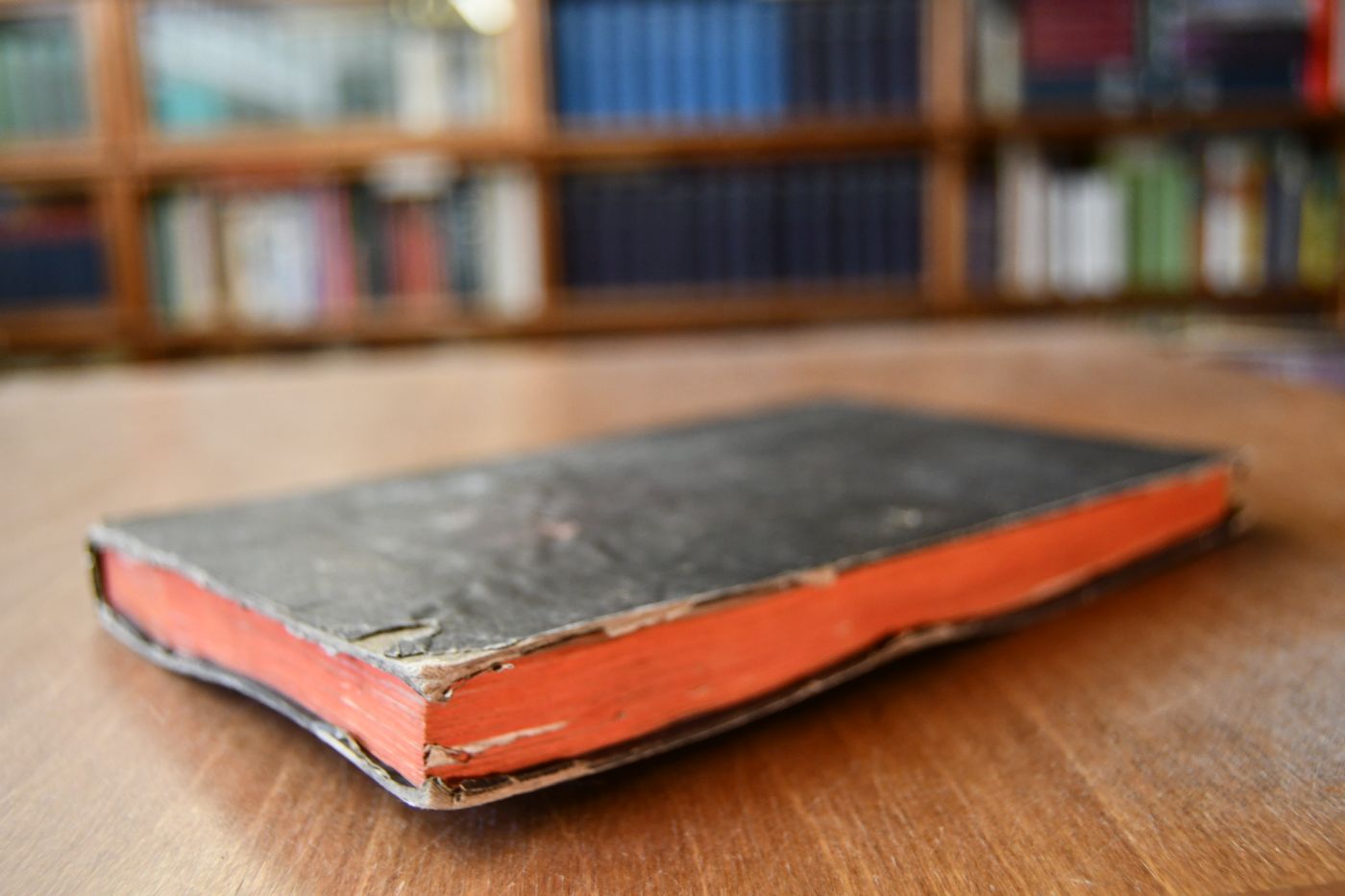 Format 23 x 14 cm, Pappband der Zeit mit umlaufenden Rotschnitt