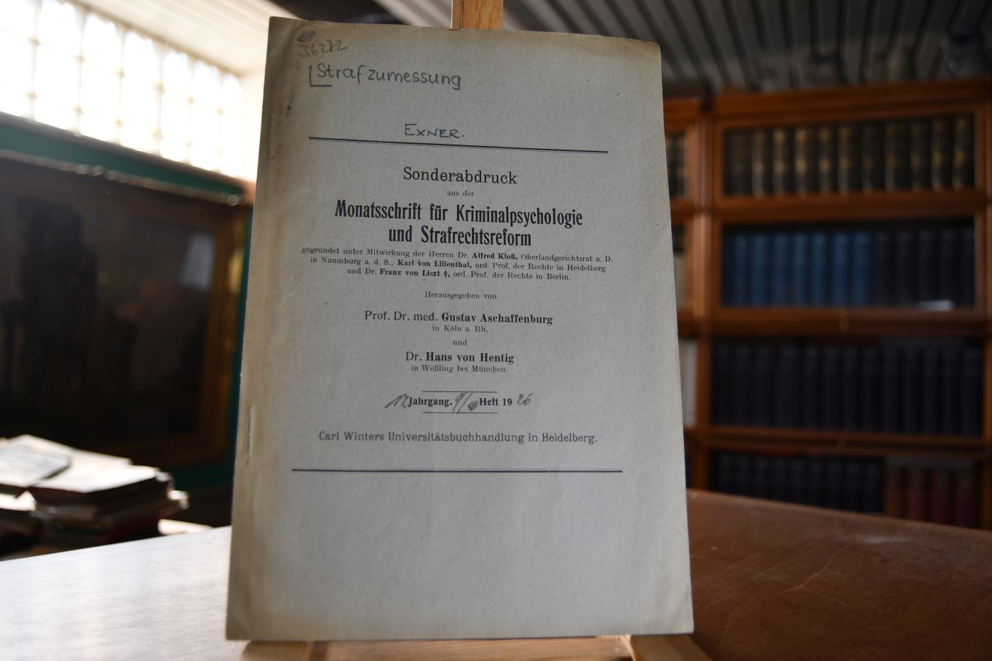 Sonderabdruck aus der Monatsschrift für Kriminalpsychologie und Strafrechtsreform, 17. Jahrgang, 9./10. Heft