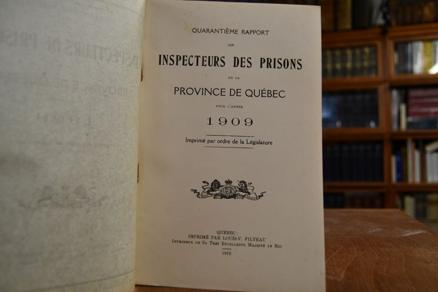 Quarantieme Rapport des Inspecteurs de Prisons de la Province de Quebec pour l`annee 1909.