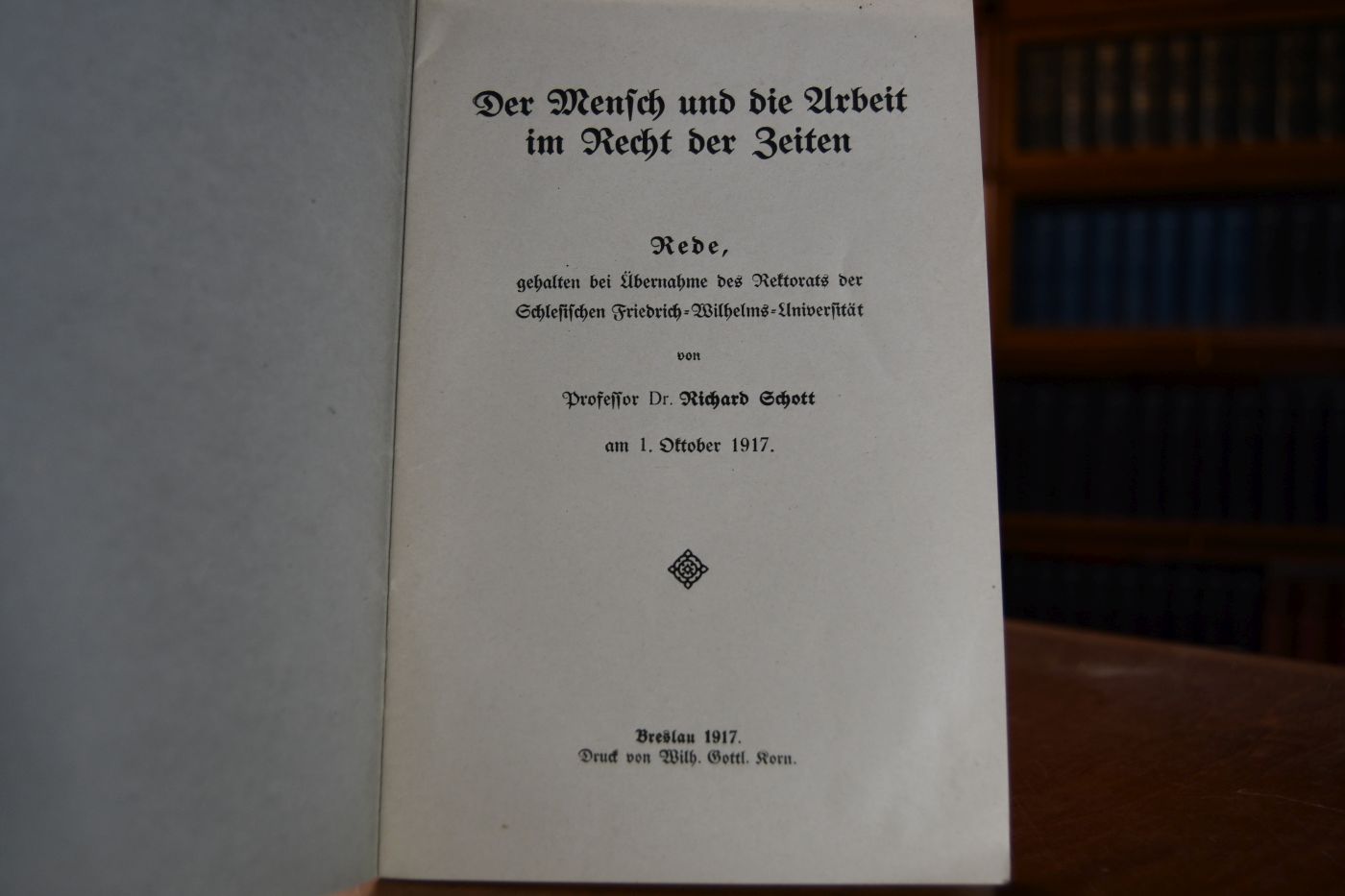 Der Mensch und die Arbeit im Recht der Zeiten. Rede gehalten bei Übernahme des Rektorats der Schlesischen Friedrich-Wilhelms-Universität am 1. Oktober 1917.
