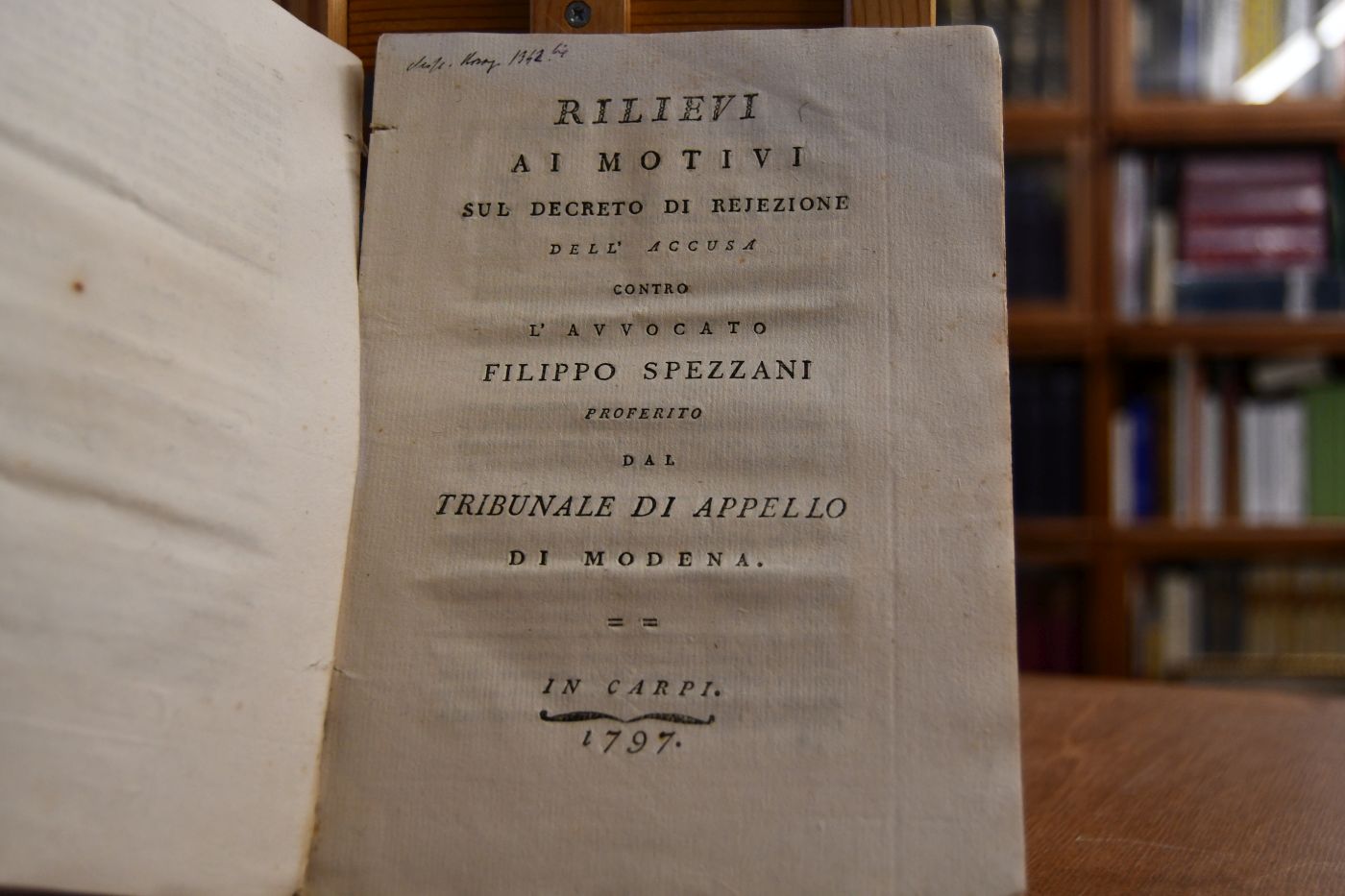 Motivi estradati dal tribunale d`appello di Modena in favore dell`avvocato Filippo Spezzani. Rilievi ai motivi sul decreto di rejezione dell`accusa contro l`avvocato Filippo Spezzani proferito dal tribunale di appello di Modena.