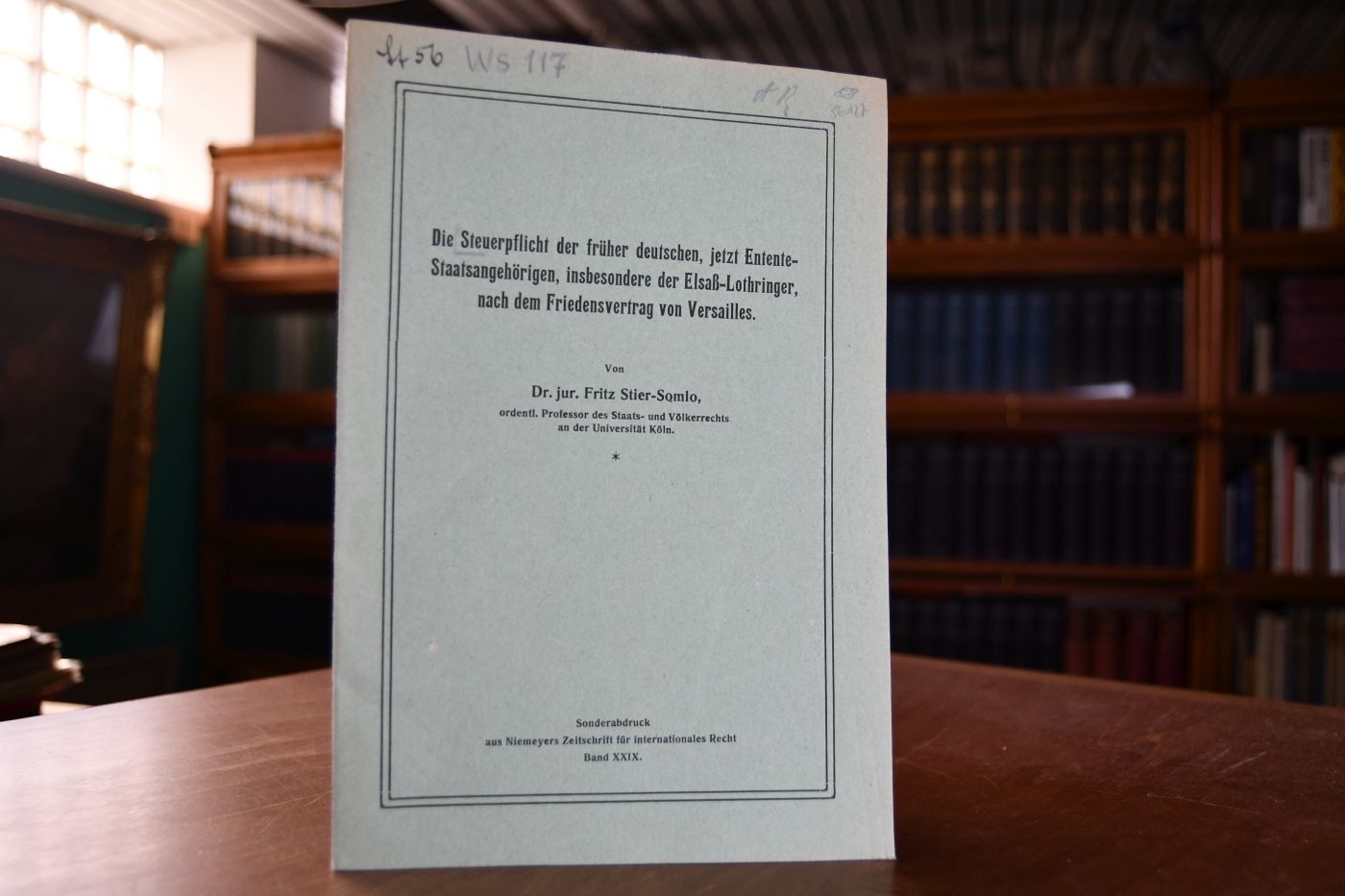 Die Steuerpflicht der früher deutschen, jetzt Entente-Staatsangehörigen, insbesondere der Elsaß-Lothringer, nach dem Friedensvertrag von Versailles.
