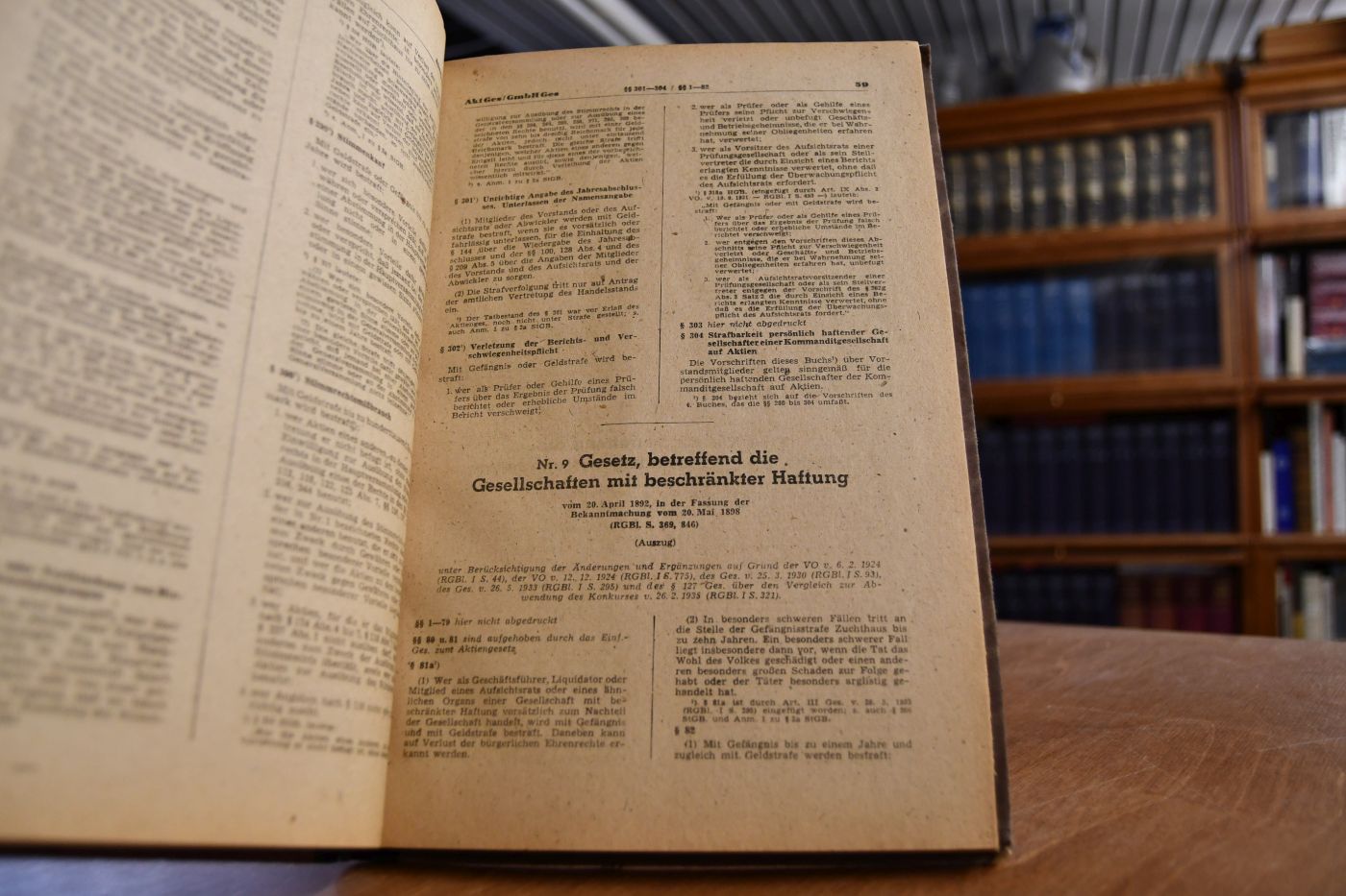 Beschreibung Einband berieben, bestoßen und mit Einrissen am Rücken. Papierbedingt gebräunt. Ab S. 154 ff. mit den Kontrollratsvorschriften zur Entnazifizierung des Strafrechts. Immer wieder Farbstiftunter bzw- -anstreichungen und Marginalien.