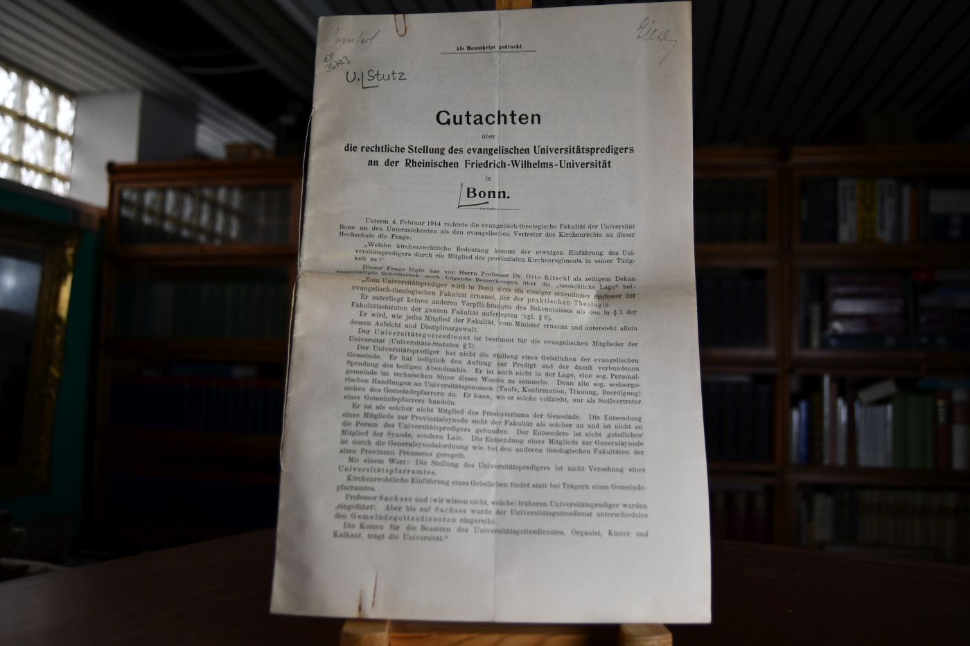 Gutachten über die rechtliche Stellung des evangelischen Universitätspredigers an der Rheinischen Friedrich-Wilhelms-Universität in Bonn.