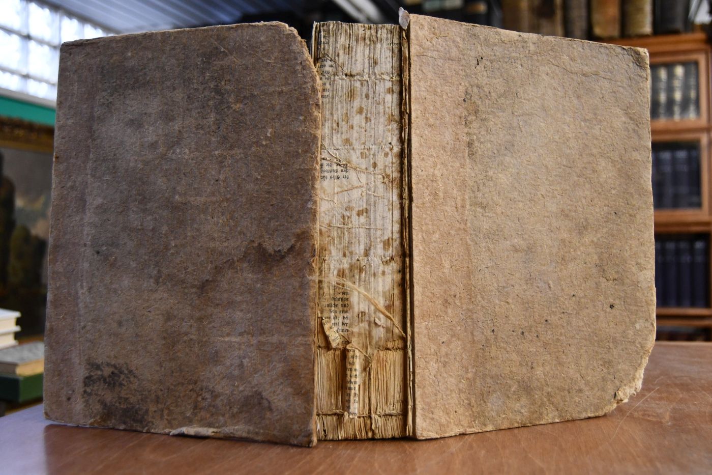 Beschreibung Einband berieben, bestoßen, angeschmutzt und fleckig. Beide Deckel lose, Rücken fehlt. Durchgehend immer wieder fleckig.