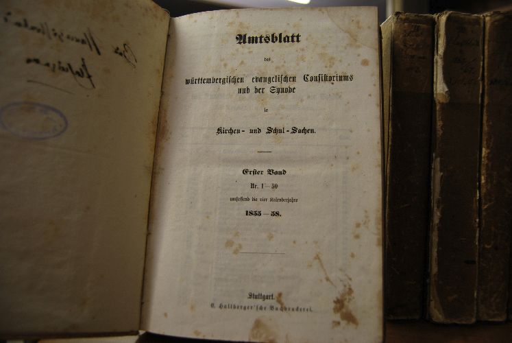 Amtsblatt des württembergischen evangelischen Consistoriums und der Synode in Kirchen- und Schul-Sachen. Bde. 1-5 1855-1873.