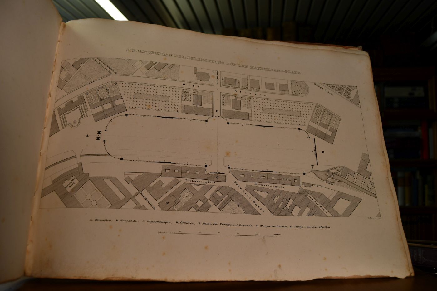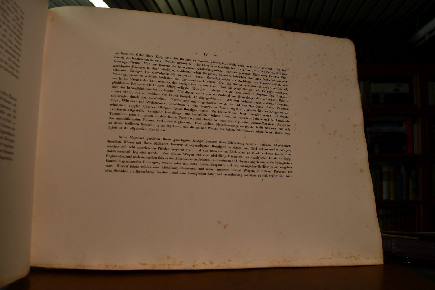 Beschreibung Einband berieben und besoßen. Mit etwas Verlust des Überzugpapiers. Durchgehend fleckig. Lentner 296. - Seinerzeit nicht in den Handel gelangtes Werk über die Festlichkeiten am 16. Februar 1824. Unter den Tafeln eine Darstellung des Oktoberfests von 1810.