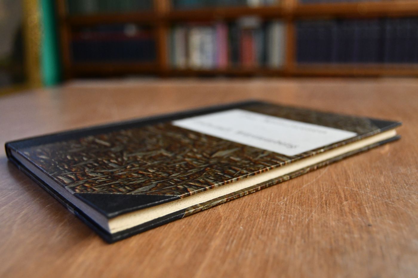 Format 22 x 15 cm, privates Halbleinen mit aufgezogenem Broschurtitel auf dem Vorderdeckel und handschriftlichem Rückenschild
