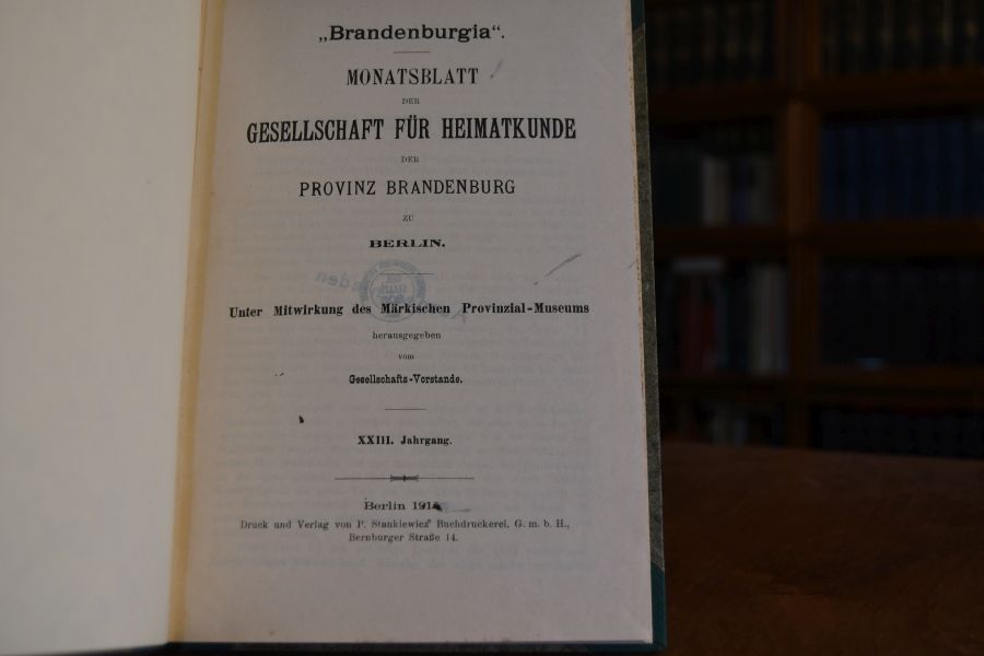 "Brandenburgia". Monatsblatt der Gesellschaft für Heimatkunde der Provinz Brandenburg zu Berlin. XXIII. Jahrgang 1915.