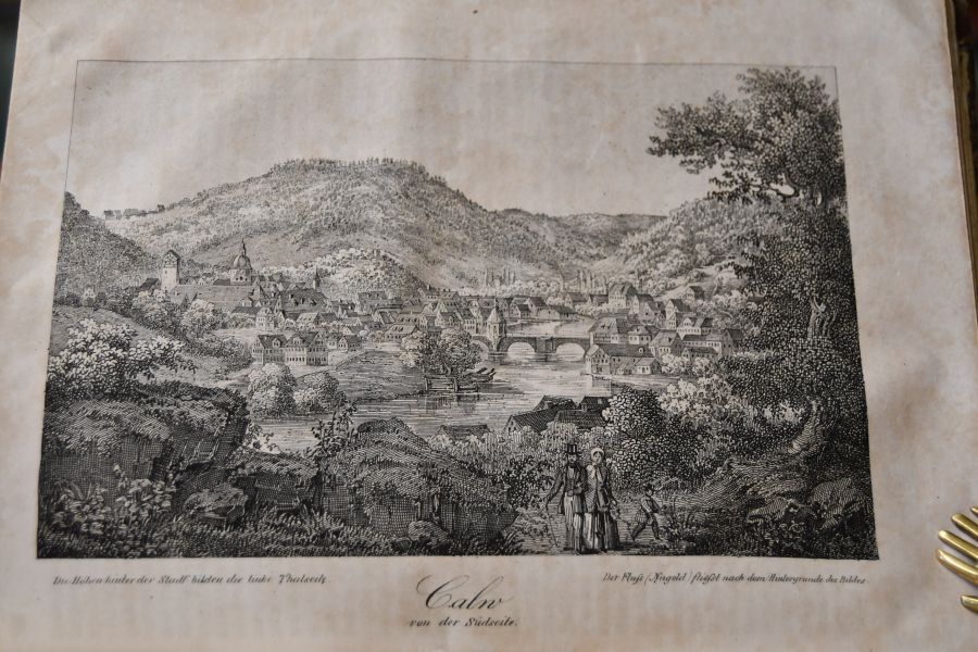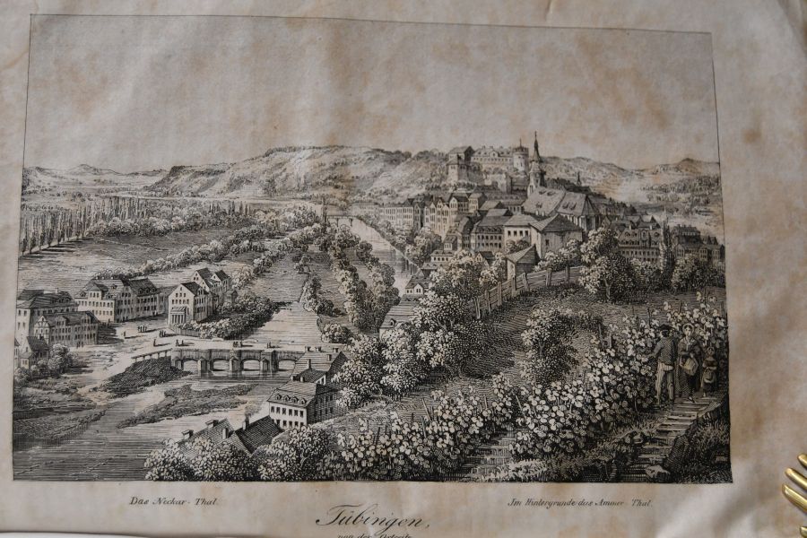 Beschreibung Einband berieben und bestoßen. Hinterer Falz geöffnet. Letzte Blätter eselsohrig und letztes Blatt mit kleinberer Fehlstelle. Durchgehend fleckig. Enthält auch lithographierte Stadtansichten von Calw und von Tübingen.
