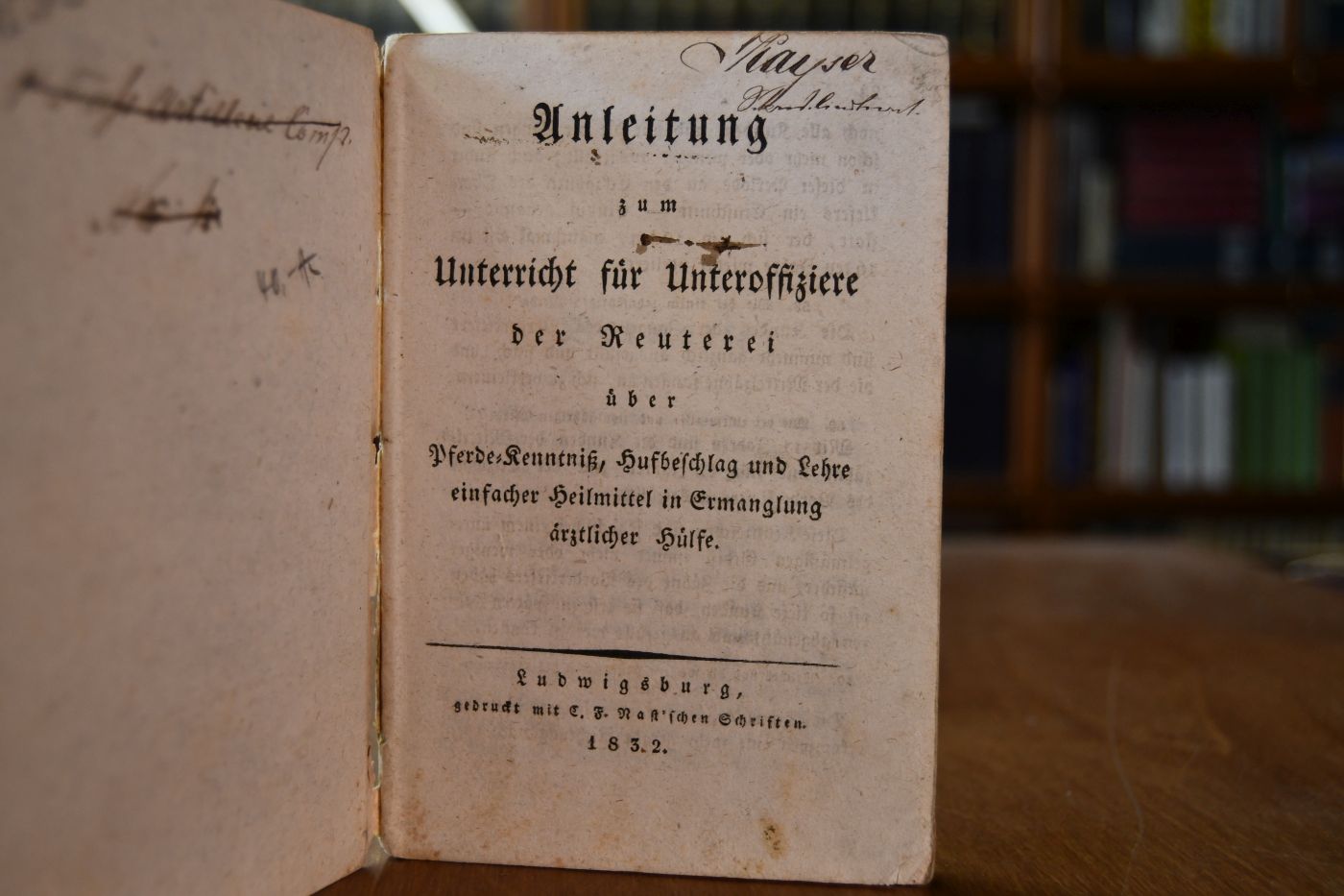 Anleitung zum Unterricht für Unteroffiziere der Reuterei über Pferde-Kenntniß, Hufbeschlag und Lehre einfacher Heilmittel in Ermangelung ärztlicher Hülfe.