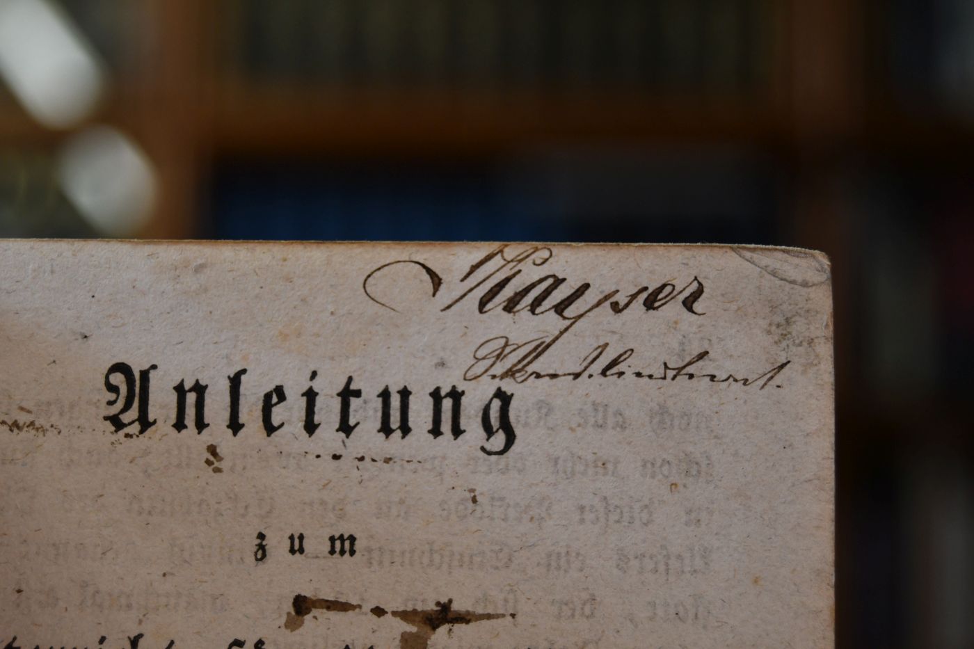 Beschreibung Einband fleckig, berieben, bestoßen und Rücken mit weitgehendem Verlust. Durchgehend fleckig. Handschriftliche Besitzereinträge (Kayser, Secondlieutenant) auf Innendeckel und Titel.