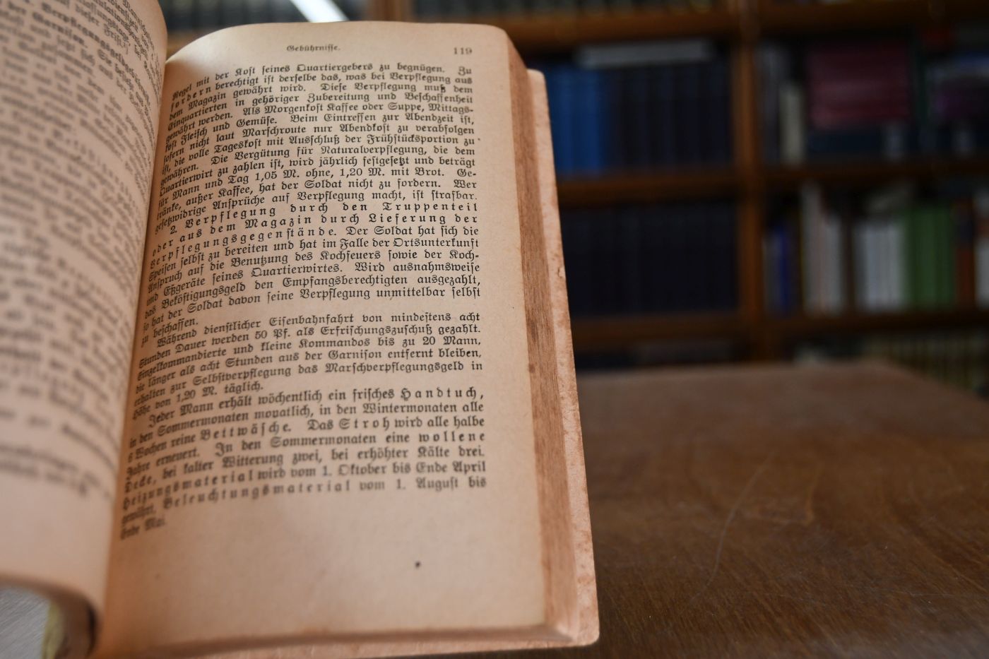 Beschreibung Einband berieben, bestoßen, angeschmutzt, fleckig und mit Einrissen. Ohne das Frontinspiz und 5 Lieder der Beilage 5. Schnitt und innen durchgehend fleckig. Besitzerstempel (Ersatz-Eskadron Leib-Dragoner-Regiments [2. Großh. Hess.] Nr. 24) auf dem Titel.
