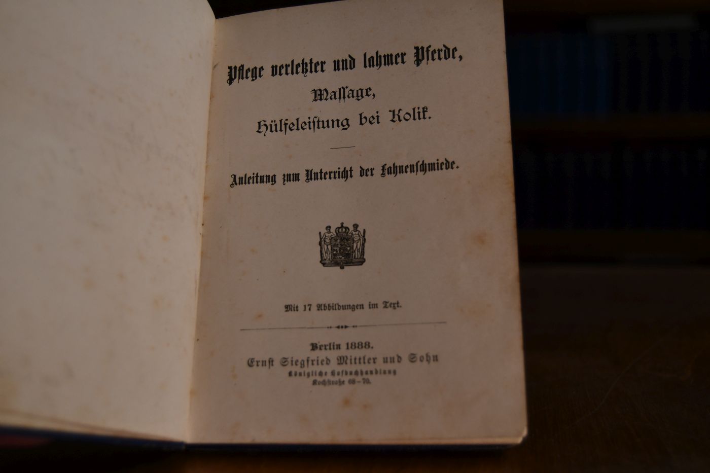 Pflege verletzter und lahmer Pferde, Massage, Hülfeleistung bei Kolik. Anleitung zum Unterricht der Fahnenschmiede.