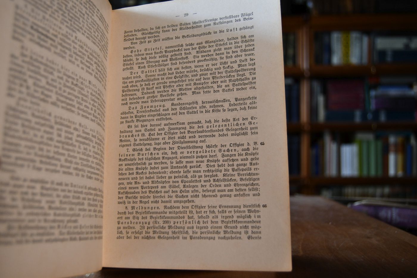 Beschreibung Einband fleckig, berieben, bestoßen, mit Einrissen und etwas Verlust. Einige Seiten gelöst und vorgefallen. Handschriftlicher Besitzereintrag (Schmidbaur Jos. 4. FAR 1. Batl.) auf fliegendem Vorsatz.