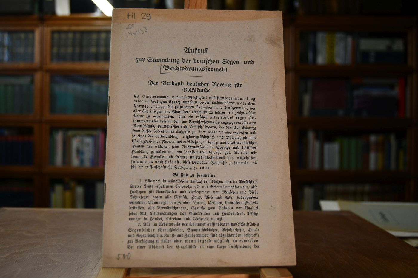 Aufruf zur Sammlung der deutschen Segen- und Beschwörungsformeln