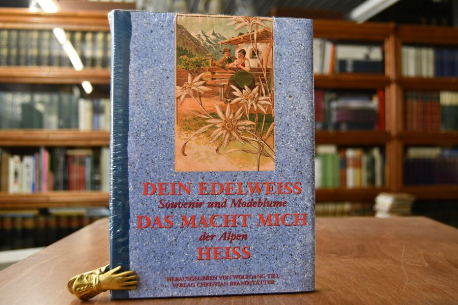 Dein Edelweiss, das macht mich heiss. Souvenir und Modeblume der Alpen mit einem Teilreprint von "Das Edelweiss" von E. M. Kronfeld, einem Gedicht von Mascha Kaleko sowie alpenländischen Liedern und Gstanzln.