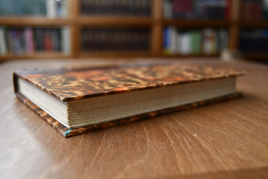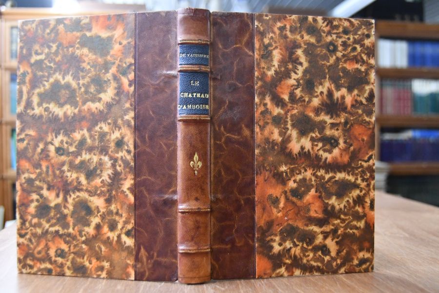 Format 20 x 14 cm, Halbleder mit 5 Bünden und 2 Rückenschilden.