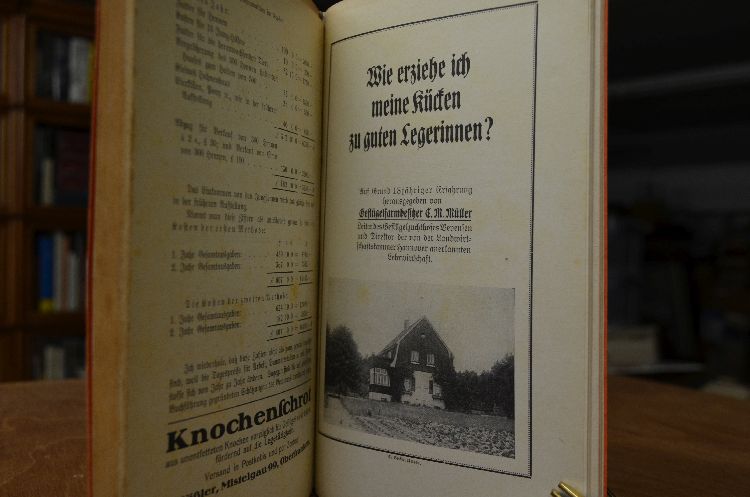Die rationelle Brut und Kückenaufzucht. Beigebunden S.G. Hanson Eierproduktion im Großen. Mistelgau, Rößler, 1921, 40 S.; C.M. Müller Wie erziehe ich meine Kücken zu guten Legerinnen. Selbstverlag, 4. Tsd., 30 S. mit Ill.; C.M. Müller Wie erziele ich von meinen Legehennen die höchstmögliche Eierzahl zu jeder Jahreszeit? Eine Feststellung der Fehler der zur Zeit auf dem Lande üblichen Fütterungsweise nebst genauer Anweisung, was, wieviel und wie zu füttern ist. Selbstverlag, 21 S.