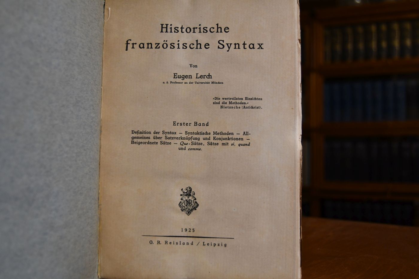 Historische französische Syntax. Band 1 (von 3) Definition der Syntax - Syntaktische Methoden - Allgemeines über Satzverknüpfung u. Konjunktionen - Beigeordnete Sätze - Que-Sätze, Sätze mit si, quand und comme.