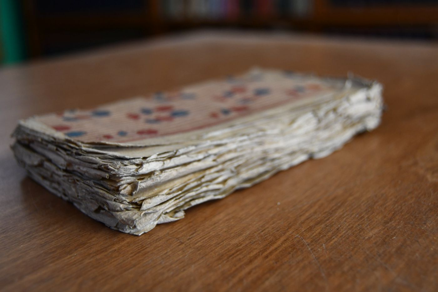 Einband berieben, bestoßen, unbeschnittene Ränder angeschmutzt und mit Einrissen.