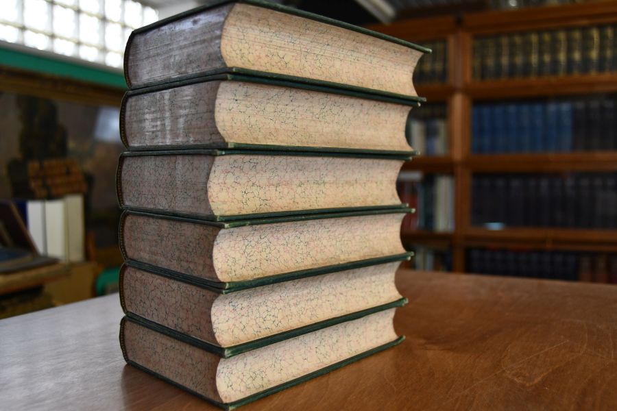 Beschreibung Einband berieben und bestoßen. Vorderdeckel von Band 1 fast vollständig von Rücken gelöst. Fälze geöffnet. Exlibris auf Innendeckeln (Ch. Fr. Adolf Schaefer). Fliegendes Vorsatz mit Eckabschnitt und herausgeschnittenem handschriftlichen Besitzereintrag. Innen meist sauber, gelegentlich etwas stockfleckig und in den Bänden 11 und 12 Bleistiftanstreichungen und -marginalien. WG II, 23..